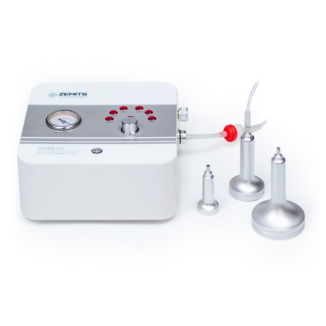 Zemits Leger 2.0 – це оновлена версія популярного апарату вакуумно-роликового масажу Leger. У комплектацію апарату входять 3 металеві вакуумно-роликові насадки для тіла, 6 пластикових банок для вакуумного масажу сідниць та боків, а також 12 скляних насадок для роботи по обличчю та декольте.