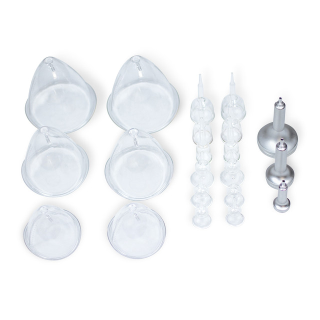 - металеві вакуумно-роликові насадки: у діаметрі 8 см, 6 см та 3 см (для глибокого та ефективного масажу підшкірно-жирового шару та м'язового каркаса) - 3 шт.